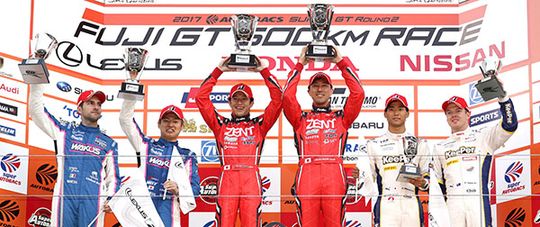 SUPER GT第2戦が富士スピードウェイで行われ、立川 祐路/石浦 宏明組 ZENT CERUMO LC500 38号車がポールポジションから後続を引き離し圧勝、500kmの長丁場を制した。2位に大嶋 和也/アンドレア・カルダレッリ組 WAKO'S 4CR LC500 6号車、3位に平川 亮/ニック・キャシディ組 KeePer TOM'S LC500 37号車が続き、LEXUS LC500は悲願のホームでの勝利を表彰台独占で飾った。また、GT300でも、今季から新型がデビューしたJMS P.MU LMcorsa RC F GT3 51号車が、中山 雄一/坪井翔の若手コンビで初勝利を飾り、LEXUSが両クラスを制した。