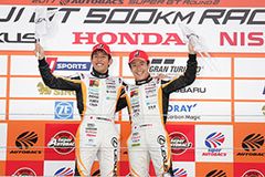 - 本当に嬉しい。久々の富士での勝利で、3年間悔しい思いをしてきたので、今回勝てて本当に良かったし、富士でも勝てるクルマを目標に開発してくれたそして今週その車をきちんと完璧に仕上げて、レース中もトラブルやピット作業のミスなくこなしてくれたチームにも感謝したい。今日のレースに関しては、スタートを僕が行って、出来るだけ逃げたいという思いもあったが、周りのLEXUS陣営も速く、僅差ですごく大変な序盤だった。ただ、GT300クラスが現れてからは、それを上手く処理することに専念して、後続との間隔は保ったまま石浦選手に交代出来た。その後は石浦選手が頑張ってくれて、状況も味方して10秒以上のマージンが出来たので、最後のスティントは本当に楽をさせてもらった。後続との間隔を見ながら安全に、確実にゴールまで運ぶだけだったので、僕としては楽だったし、クルマが本当に良かった。
