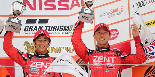 - ずっと23号車を追う形となり、ブレーキはこっちの方が詰められるので、行けるかなと思っていたのだが、ブロックが厳しく、無理に行くとぶつかってしまうので逆転は叶わなかった。ファイナルラップはどこかで行きたいと思っていたのだが、ちょうど最後の最後にGT300クラスの集団に追いつき、それでちょっと離れてしまった。でも良いペースでレースを戦うことが出来た。昨日から今日のウォームアップまでクルマがあまり決まらず、グリッドでも大きく変更するなど少し不安だったが、立川さんの走りを見てほっとした。タイヤも予定とは違う、立川さんと同じものにして、それが上手く行った。僕自身はピットを出てから最後までずっとバトルで、結局抜けなかったので悔しいが、表彰台に上れたのは良かった。