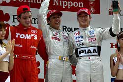 心配された雨も降らずにむかえた15時近くのスタートでは、ポールからスタートの#1小暮と#7モンティンが先行する形になる。オープニングラップは、トップ#1小暮に続いて1.0秒差で#7モンティンがつけ、3位は#64佐藤、4位は#3ザンガレリ、5番手に#2長屋、6番手は#8横溝直輝というオーダーになっていた。6番手の#36片岡龍也と8番手の#37平中克幸の2台のトムス勢が出遅れた。