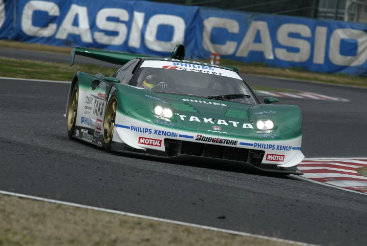 ホールショットはポールポジション・スタートの#8 ARTA NSXのファーマン選手、2位に#18 TAKATA童夢NSXの道上選手が続くが、130Rでオーバーランを喫し3位に後退する。