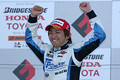「みなさんのお陰で3戦連続ポールトゥウィンが達成できました。信じられないです。昨日の予選も接戦だったんですけど、今日の決勝も接戦になると思っていました。スタートをミスしないように、序盤もミスしないで、なおかつタイヤも労わりながら、差を広げていくことだけを考えプッシュしていました。そのうちに後ろとの差が開いていったんで、レースをコントロールし易くなりました。小暮選手が1コーナーでコースアウトしたと聞いたときは、少し気が楽になりました。3戦ともノートラブルですし、チームのみんながここまで頑張ってきたお陰です。エンジニアもぼくの意見を聞いてクルマを仕上げてくれ、何も言うことがないくらい嬉しいです。2000年に高木選手が3戦連続ポールトゥウィンをしてるのを横で見ていて、ぼくもああいう記録を作れる選手になりたいと思っていました。やっと記録に並べて、これで4連勝できなかったらまた一からやり直しになります。自分自身も乗れているので気を引き締めて、もっともっと速いクルマを作っていけば、4連勝は行けそうな気がします」