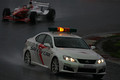 雨は現在も降り続いており、決勝第2レースはとりあえず20分遅れでスタート進行が始まることが発表されている。予定通りなら16時5分フォーメーションラップスタートとなるが、ペースカー先導により4周で成立した一昨年開幕戦と同様のコンディションとなってきた。