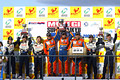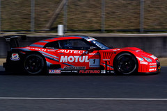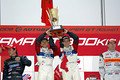 #1谷口信輝 「(初の1デイイベントは)気持ち的に慣れていない感じがした。でもSGTと違って前日に練習走行で走れるから次の日に予選にのぞめる。GTは朝フリー走行でいきなり予選なので、その辺はこっちの方が楽だね。慣れの問題もあるだろうけど、後は予選中のマシントラブルやクラッシュなんかが怖いよね。予選でコースレコードのおまけがついてきたのもとっても嬉しかったね。いつもは最終戦なんだけど、今回は開幕戦でコースのコンディションも良かったしね。レースはメカが頑張ってクルマを作ってくれてマー(柳田選手)もハイムランもいい走りをしてくれた。2人がマージンを作って渡してくれたから、終盤はちょっとハブが怪しいかなっていうこともあって様子をみながら、クルマをいたわって走ることを心がけた。壊れたら元も子もないんで後ろを見ながらやさしく走った。1-2はもちろんうれしいけど、勝つの#1のほうだからね(笑)」