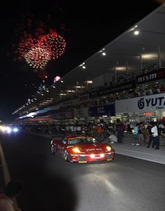 しゃく熱の舞台となった第6戦は、午後3時にウオーミングアップランが開始されたが、この時点でも気温34℃、路面温度49℃、湿度66%と、厳しいコンディションとなった。121周の長丁場である決勝レースは、3万3000人の大観衆が見守る中、計36台(GT500クラス13台)のマシンが午後 3時5分にローリングスタートを切った。