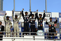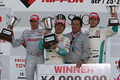 第14戦で全日本F3初優勝を飾った山内英輝(中央)と、