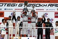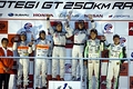 この日のもてぎはコースコンディションはドライながら上空は曇空。それでも各陣営の今シーズンの集大成がぶつかり合う最終戦には、この日だけで3万2千人、前日からの延では4万5千人もの観客が詰めかけ、まさに日本最高峰のレースイベントに相応しい盛り上がりの中でスタートの時を迎える事となった。その決勝レースは14時ちょうどにフォーメーションラップがスタート。2列縦隊に並んだ24台のGT300マシンが最終コーナーに姿を見せると、ホームストレート上ではローリングからのスタートを知らせるグリーンシグナルが点灯。大歓声の中、今シーズン最後の雌雄を決する250kmの戦いが始まった。