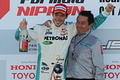 上位陣はこのまま代らず、チェッカーを迎えた。Nクラスは、千代勝正(ルボーセ)が、1分45秒945トップに立つと、タイムを45秒889まで縮め、うれしいクラス初ポールポジションを決めた。チャンピオンを争う蒲生尚弥(トムス)は3位、小林崇志(HFDP)は4位と振るわなかった。