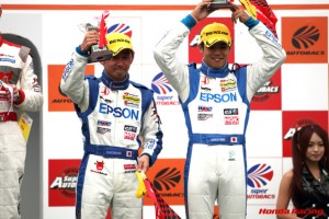#32 EPSON HSV-010を走らせるエプソン・ナカジマ・レーシングが表彰台を手に入れたのは、2008年第8戦オートポリス大会以来の快挙。また、中山選手はデビュー3年目にして、念願の表彰台に立つこととなりました。