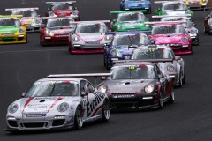 そして開始10分過ぎに、#4平川亮が1'41.942と最初に41秒台を出してきた。これは2008年に松井孝允が記録した富士でのFCJコースレコード1'41.577に迫るものだ。その後一旦は#10松下が1'41..861を出しトップに躍り出たものの、次の周には#4平川も1'41.622を出して再逆転、先週のポルシェ・チャレンジ・カップに続いて開幕戦をポールポジションからスタートすることになった。2番手には#3篠谷大幹がつけ、ルーキーの#3松下が3番手。 しかし一方で、今週のテストにおいて初日、二日と多くのセッションでトップタイムを記録し、非公式ながら松井のレコードタイムをも上回っていた#12高星明誠は4番手に終わる。#12高星はハンドリングバランスの変化に苦しみ今ひとつ攻めきれない状況。クルマ自体には全く手を加えていないとのことであり、あるいは気温、路面温度の低下が影響したのかもしれない。