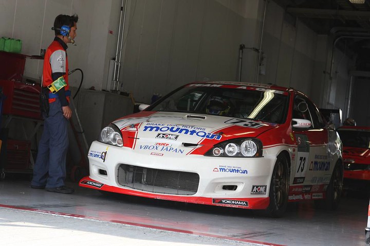 #73 mountain.VBOXJAPAN.YH.DC5は、今回の鈴鹿に向け、mountainブレーキディスクの改良品に加え、新たな足回りの投入に踏み切りました。