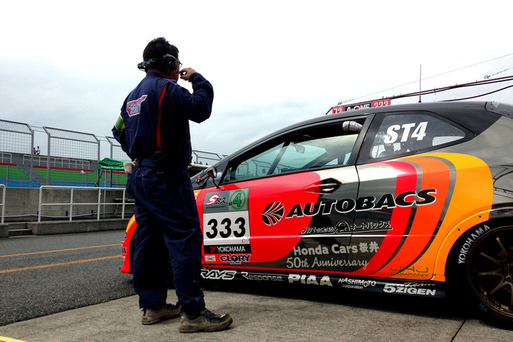 #73 mountain.VBOXJAPAN.YH.DC5は、今回の岡山に向け、足回りのセッティングを大幅に変更。今シーズン初の表彰台を目指し、万全の体制で第5 戦 岡山に挑みました。