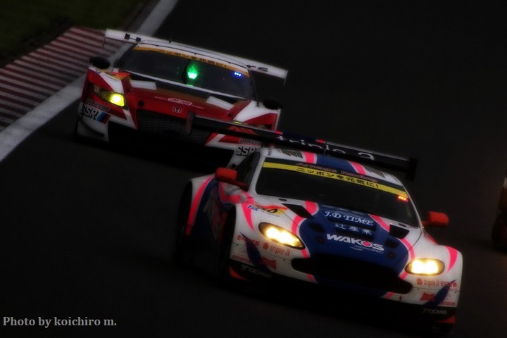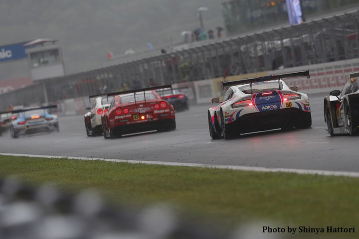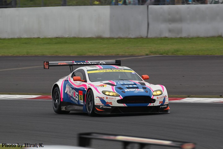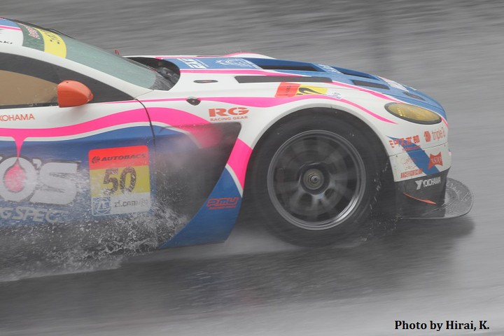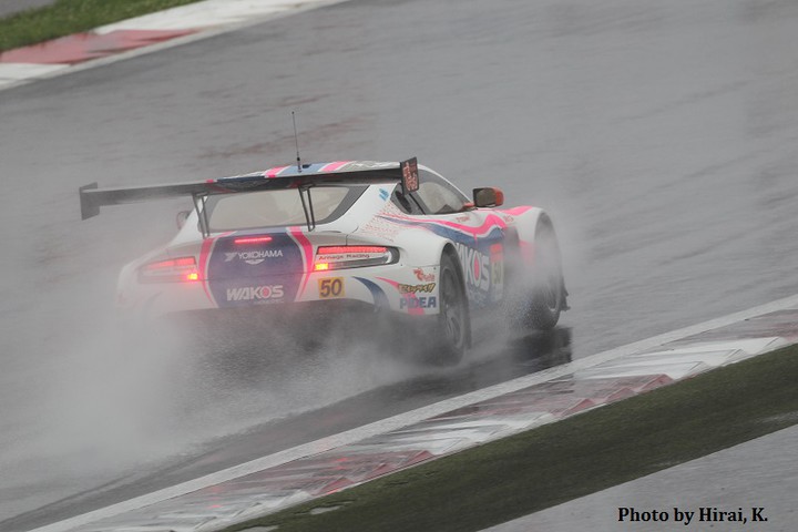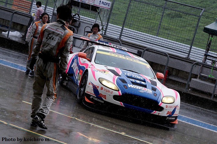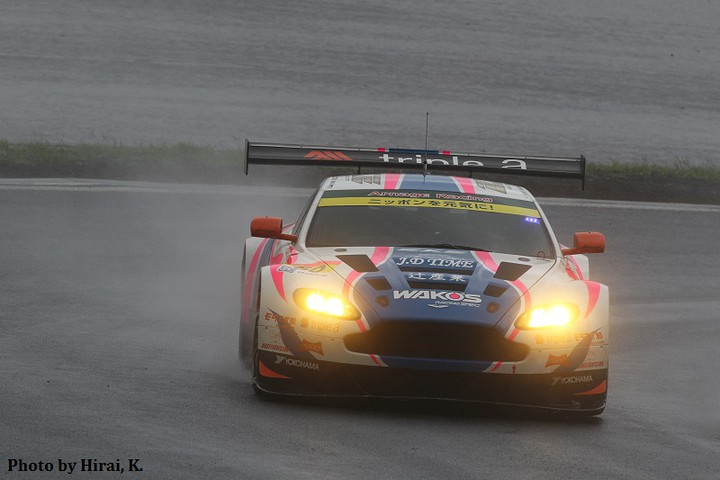 台風の影響で、来場して頂いたお客様には大変申し訳ない天候となりました。また、ピット裏のテントを早めに片づけてしまいご迷惑をおかけしました。しかし、レースをしている側には、結果は報告書にて示した通りですが、今回のレースは非常に面白いレースでした。監督の立場から今回のレースを振り返ると、まず、安岡選手の非常に冷静且つ高度なレース感により、アストンマーチンにとって有効なタイヤ選択を見い出せた事、そして、加納選手の普段からの努力が少しずつ形になってきている事。この、得難い二つの成果が見られたことがなによりでした。レースとしては、周回数の何割を路面に適合したタイヤで走るかといったゲームだったと思いますが、前半、安岡のスピンごときで動転してしまって、インターからウエットにタイヤを交換したことが悔やまれます。アストンは多少のウェット路面でもインターで十分いけるはずだったんですが… また、そういう観点から、アストンにとっては十分インターでいける路面を、苦しみながらウエットタイヤ走っていた安岡を、もっと早めにピットインさせるべきところの判断遅れも痛かったですね。その後、加納さんが、素晴らしい走行で追い上げてくれたのが何よりでした。こういうレースでは、もっと自らのレース感を磨かなければ、結果は得られそうにないと反省している次第です。次戦は鈴鹿1000km長丁場で、加納・安岡に加えナニンも走行します。変わらぬ応援をよろしくお願いします。 - 加納選手のコメント