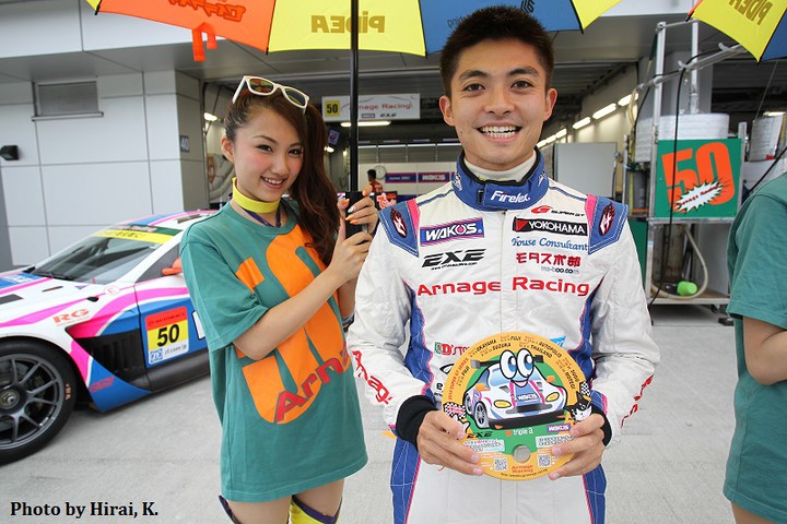念願のウェットレースだったんですけど、上手くいきそうなところで上手くいかず、その分を加納さんに取り返してもらったというレース展開になってしまいました。最初インターで出て行って、スピンしないというのがお約束だったはずなのですが、車が浮いてしまってどうしようもなかったし、ウエットタイヤでレースを再開してもなかなかペースが上がんなくて… ほんとに、アタックはしていたのですが、ずっとどうにもならないままでした。タイヤはどんどんズルズルになっていくし、そろそろ入れないのかなあと思ってたら、やっとピットに入れてもらえたような状態でした。個人的には結構悔しいことばかりで、予選もいいアタックをしたつもりだったのに19 番だったし、ミスなくやっていかなければならないところでスピンしたり。次の鈴鹿はミスなく攻めていくレースだと思いますので、また、菅生みたいに上の方走れるよう、三人で、加納さんとナニンくんと、頑張りたいと思います。