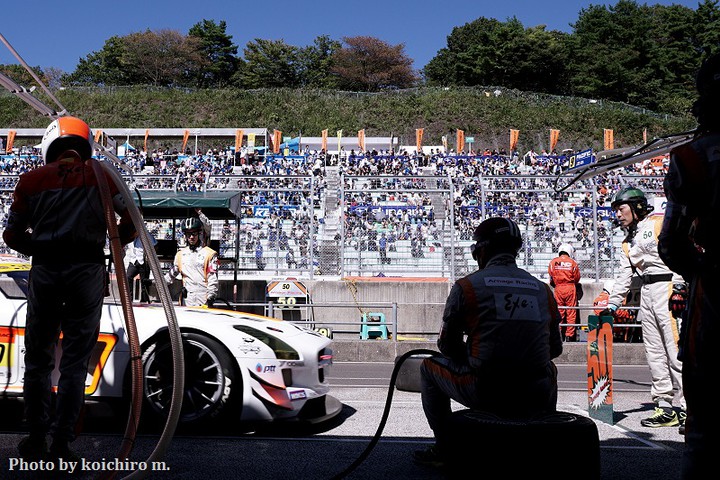 お疲れ様でした。前回の鈴鹿から今回の菅生にかけては、チームのみんなの意地と意気込みがあって、ここ(菅生)に来れたわけですし、そのなかで、ちゃんとチェッカーまで受けれて、アルナージュらしいレースができてほんとによかったと思ってます。今回のレースは途中でSCが入ったりしてレースが荒れたんですけど、そんな中で順位はどうあれ、とりあえず、完走することができて、いつものような流れでレースできたんじゃないかと思います。でもあのタイミングで交代するのは今までにないパターンで、まあ今まででたぶん一番長く乗ったレースになったんじゃないかな。これからこういうレースもあるんじゃないかと思うし、何より、ここ3戦、ほんとに色んなことがあって、色んなことが起こる中で、それが一つ一つドライバー含めチームの引出しになって、また強くなっていくんやと思います。去年はオートポリスのレースから、ポイントを取っていく流れが出来たような気もするし、今日のクルマの動きを考えると、結構ちゃんと曲がるし、オーポリも厳しいような感じじゃなさそうなんで、今回の経験も糧にしてね、何よりまずちゃんと完走して、とりあえずはレースをすっきり終わらせる。その中でまあ順位が後ついてくると思うんで、それを目指して、頑張りたいと思います。ありがとうございました。 - ドライバー 安岡秀徒