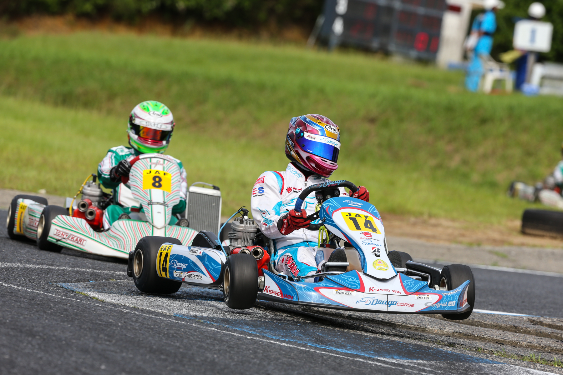 迎えた決勝日、天候は回復しドライコンディションで予選ヒートは行われ、佐藤が3戦連続となる決勝ヒートのポールポジションを獲得、2番手に皆木駿輔(Croc Promotion)、3番手に上原、4番手に武井遥斗(チームウルフ)という決勝ヒートのスターティンググリッドとなった。