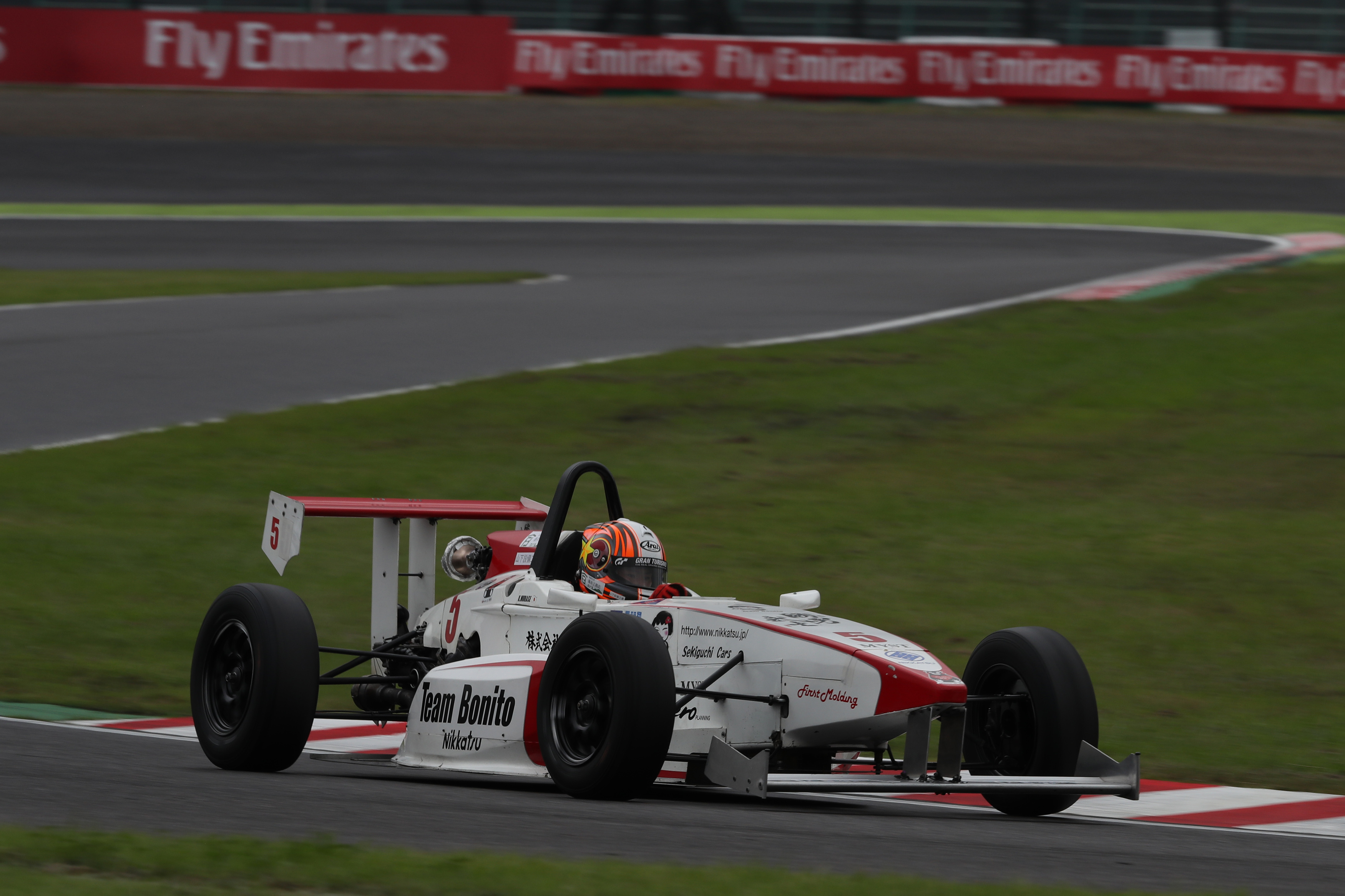 - 「レインでスタートして途中でドライに代えました。去年はFIAーF4に出ていて、スーパーFJは初めて乗りました。トップからは1秒以上離されているのでただただ悔しいです。あしたは切り替えて、スタートを決め、優勝を狙っていきます」