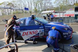 そして周回が進み前後を走るライバル車両は、早めのドライバー交代となったこともあり、中山はトップ返り咲きに成功。燃費も予定以上に優れていたことから、当初の作戦より更にロングスティントを敢行することとなり、時間にして1時間39分、63周目にようやく山下と代わることとなった。4番手で復帰すると、それからまもなく6周目にかかるところで、最終コーナー付近でストップした車両が出てセーフティカー(SC)がコースイン。チームはSCが入った際の戦略通り、山下をSCコースインと同時にピットに呼び寄せ、嵯峨へのドライバー交代だけを行なった。この作戦が功を奏し、2番手で「DENSO Le Beausset RC350」はコースに復帰し、しかも目の前にはトップのZが。約10分でSCはコースを離れ、リスタート後の逆転に期待がかかるが、トップを追い始めた矢先にまさかのトラブルが……。75周目に突然の燃料系トラブルから失速。緊急対応をすることで、なんとか息を吹き返すものの、これで25秒ほどロスした間に5番手に後退。しかし、諦めることな く、猛プッシュを重ねたことで92周目には1台をパス、また101周目には2番手を走行していた車両のミスに乗じて3番手にまで浮上。その勢いで、日産ワークスドライバーでトップカテゴリーでのチャンピオン経験もある本山哲がドライブするZにも迫っていく。相手が相手であるだけに、一筋縄には行かないと思われたものの、ラスト5周の馬の背コーナーでついに逆転。神ががり的な走りで2番手まで挽回し、表彰台に立つこととなった。6月10〜11日に鈴鹿サーキット(三重県)で行われる第3戦は、再び表彰台を、そして優勝を目指す。
