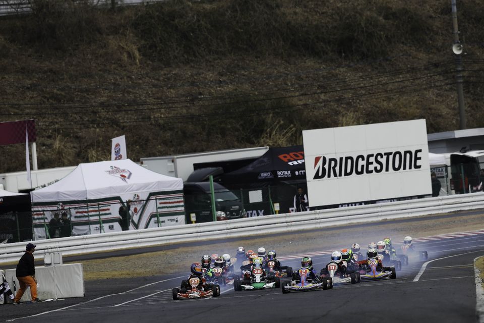 カデットオープン第1戦にエントリーしたのは、7歳から11歳の24名。北は福島県から南は熊本県まで、今季も幅広い地域から小さなファイターたちが鈴鹿に集まった。大会当日は、まだ冬の寒さが残る曇り空。タイムトライアルでは昨シリーズのランキング2位、加藤大翔(ハラダカートクラブ)が58秒037をマークしてトップを獲り、0.071秒差で近藤壱颯(Ash)が2番手に。3・4番手には百瀬翔(HRS JAPAN)と りー海夏澄(スーパーチップス)が続いた。トップから8番手までが0.25秒の中に納まる接戦のタイムトライアルだった。