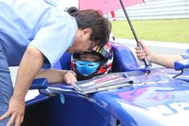 - 前回の富士の合同テストで乗せていただいて、今回参加させていただくことになりました。コースの特徴はF3やF4で掴んでいるんですが、スーパーフォーミュラに乗ると今までとは景色が違って見えるので、そこのアジャストが難しかったです。前回の予選でワンツーに入ってるチームから参戦させていただいていることに感謝しています。今はとにかくクルマになれることが第一目標です。F3と同じダラーラといっても全く違うし、速く走らせる方法も僕の中では違うと思います。タイヤのサイズもパワーも大きいので、F3の走りは通用しないなと感じました。滑り出しがピーキーな点など、F3とは全然違うので慣れないといけないですね。昨日の専有走行より今日のフリー走行の方がタイムが良かったので、次に改善すべきポイントもわかっています。それをいかに短時間で結果に結びつけるか。ミディアムとソフトのニュータイヤを今回まだ履いていないので、予選がどうなるかわかりませんが、チームには多くの経験があるので相談してアジャストしていき、実力を100%出し切れるように頑張ります。