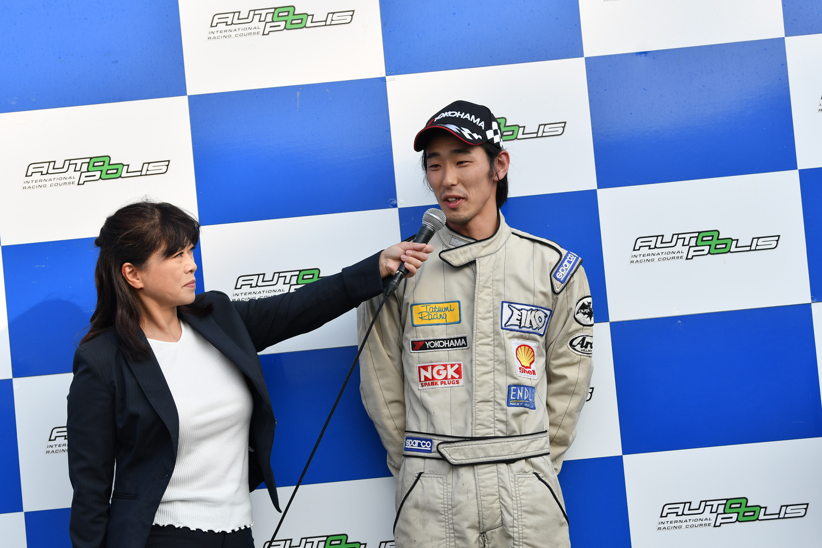 一方、終始トップ走行の #23益田と2番手 #44篠田のビハインドは最終周回まで3秒以内。「後半はタイヤがきつくなりましたが、なんとか踏ん張りました」と #23益田がそのままトップチェッカーを受け開幕戦ウィナーの座に就いた。「つかず離れずで…練習不足です」と2位の #44篠田。そして3位は #56川地とのバトルを見せた #36浜久保が通算2戦目にして初表彰台に上がった。