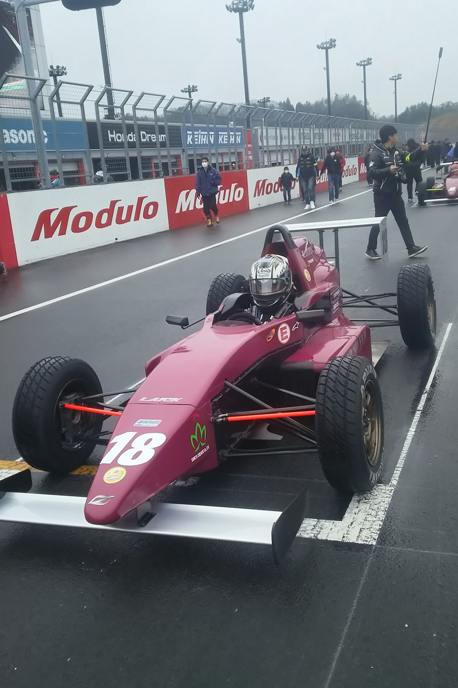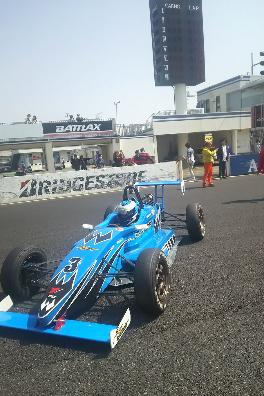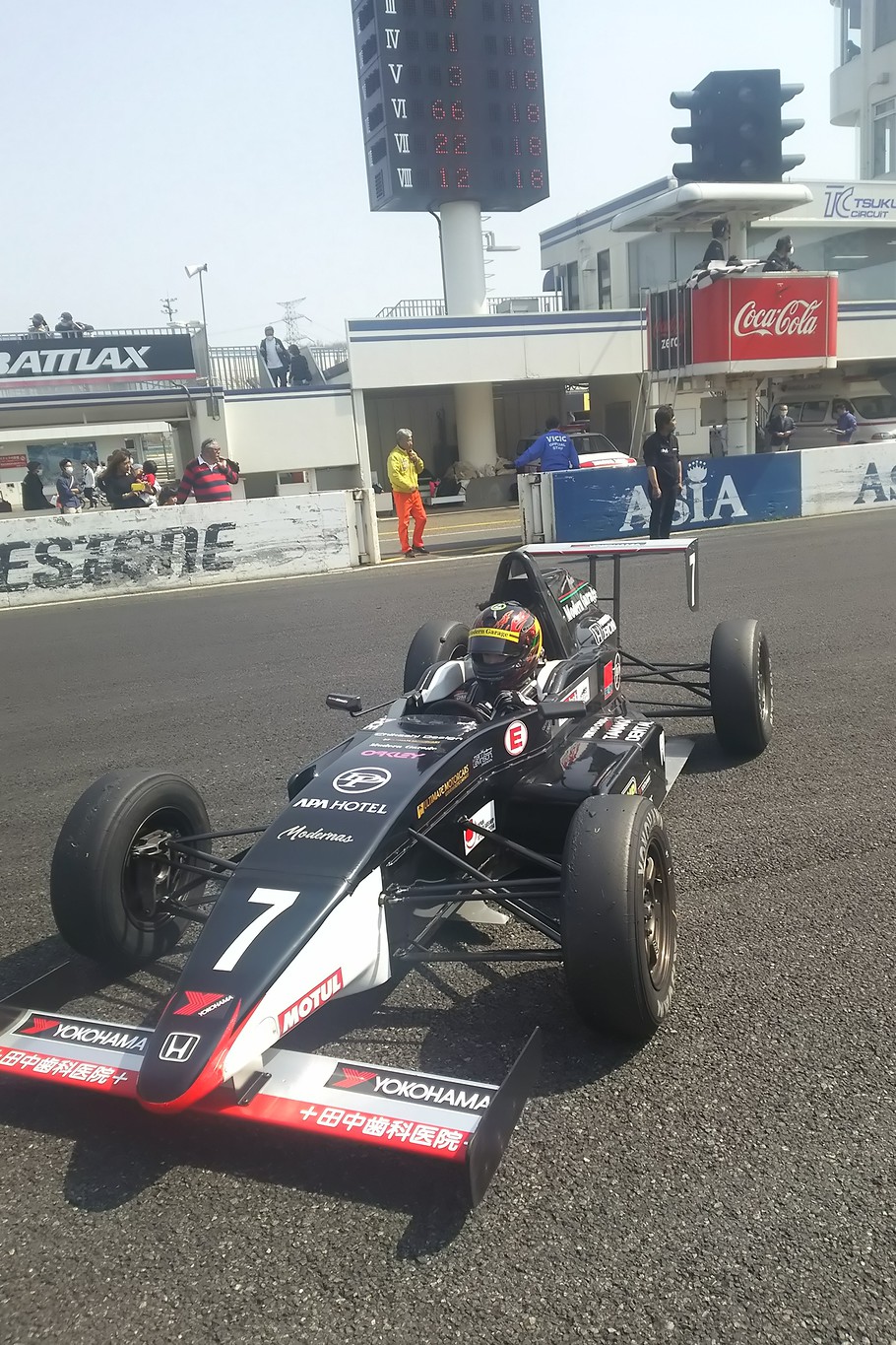 「今回は経験を積む為にスポット参戦した。土曜日の練習走行で軽くクラッシュしてウィングを曲げてしまったが今は問題ない。筑波サーキットはコース幅が狭く固有の難しさがあって勉強になる」