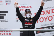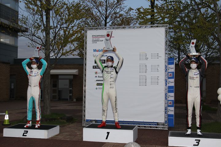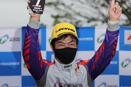 初のポール・トゥ・ウィンです(満面の笑み)。最初からペースを上げて逃げたかったのですが、三浦選手がなかなか離れなくて。ただ、もてぎのコースは抜きづらいので要所さえ抑えておけば、そう簡単に抜かれることはないだろうと思っていました。三浦選手はブレーキングが上手いので、そこを意識して、とにかくミスをしないように気を付けました。途中タイヤがきつくなってタイムが落ちましたが、三浦選手も同じような状況だったようですので、差はあまり変わらなかったように思います