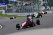 前プログラムで赤旗が提示され、F4の予選は予定より3分遅れの午後8時45分より15分間の予定で始まった。全7台がウエットタイヤを履きコースイン。