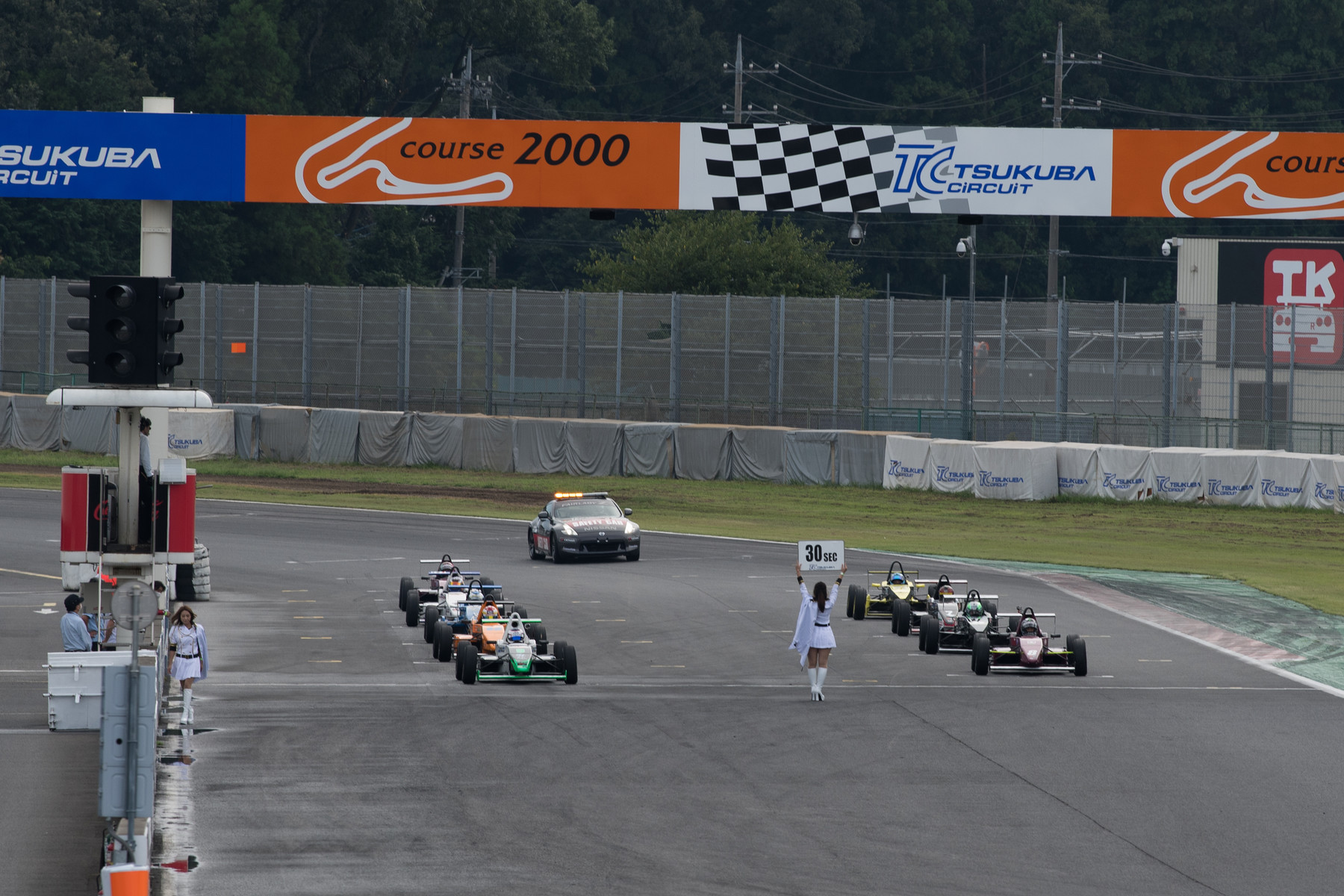 これによりスタートはディレイとなり、午後3時30分に再びフォーメーションラップが笹原と阪口を除く全17台によって開始された。これに伴い周回数も1周が減算され、全50周で行われることに。笹原は修復が間に合ってピット出口でエンジンを始動、最後尾でレースに加わった。