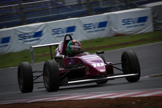 風が強く5月とは思えない寒さだった練習日とは打って変わって薄曇りながら暖かな予選の朝を迎え、第1戦/第2戦からの継続エントリーが12台あったスーパーFJは1台が出走取消。11台で予選を戦った。