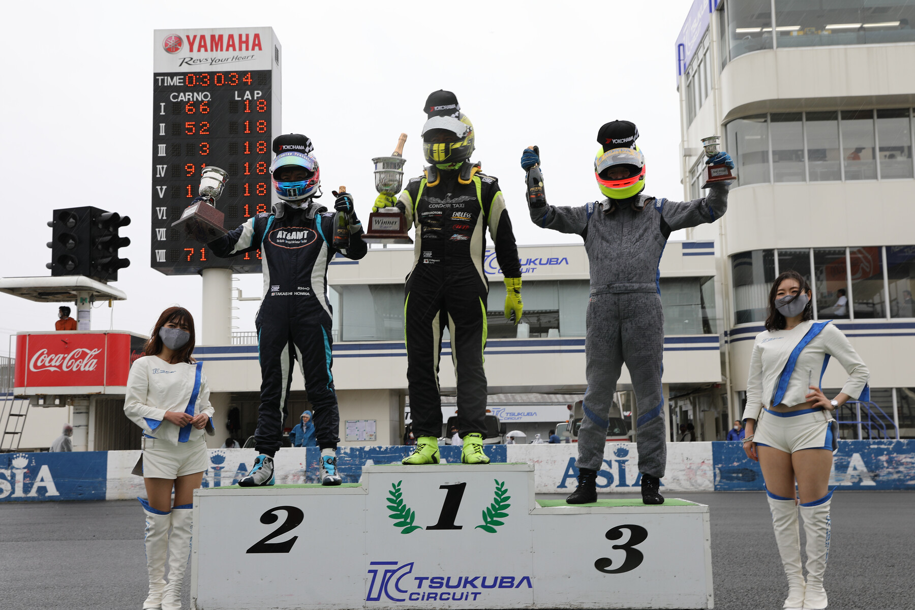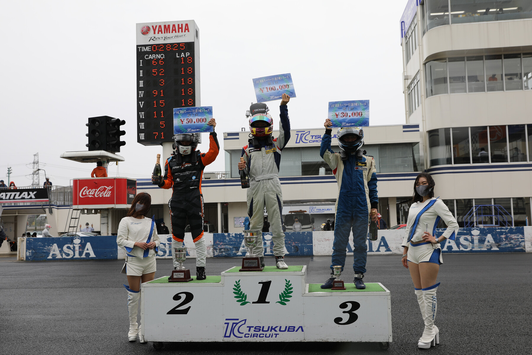 2位にはヒロボン(バースレーシングプロジェクト【BRP】)が、3位にはシリーズ初参戦の三浦愛(DOME RACING)が僅差で続いた。