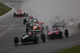 ところが、後方グリッドの#86大阪八郎(Dr.DRY F111/3)、#23YUGO(S2R Racing)がスタート後のストレートエンドで接触。コースサイドに止まってしまったため、1周目からセーフティカーが入る。
