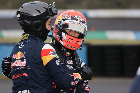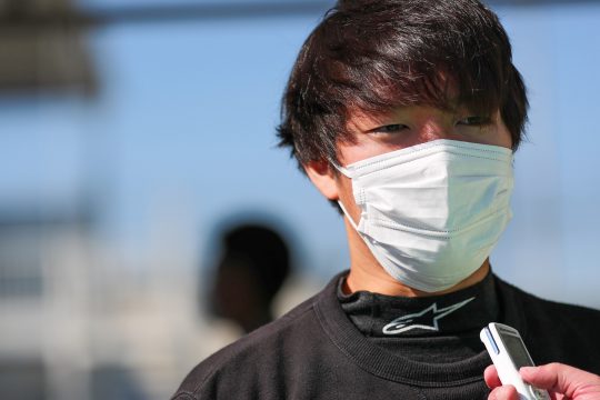 「(アクシデントの状況は?)安田選手が第1ヘアピンでミスして関根選手が前に出て、さらに野島選手がダンロップコーナーで(安田選手の)インを差した。そこで当ってしまって2台とも横を向いた。それを避けようとしたが野島選手が迫って来てよけ切れず(アウトへ)飛び出した。スタートがよくて野島選手も抜けそうな勢いだった。4番手に上がったところで前が回り出して、(進路を)右を選んだのがダメだった。もてぎだったら(エスケープゾーンが広いので)逃げられたかもしれないと思うと悔しい」