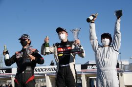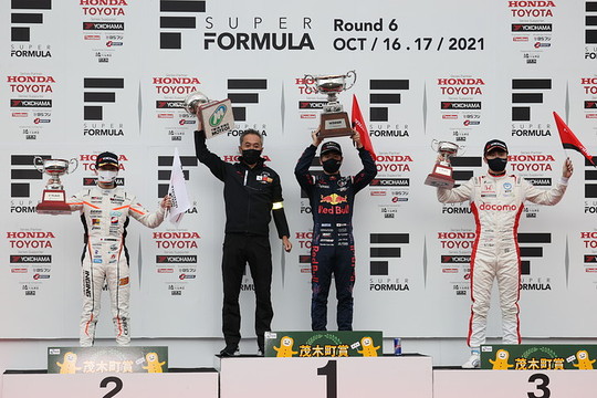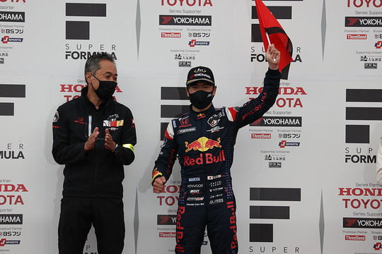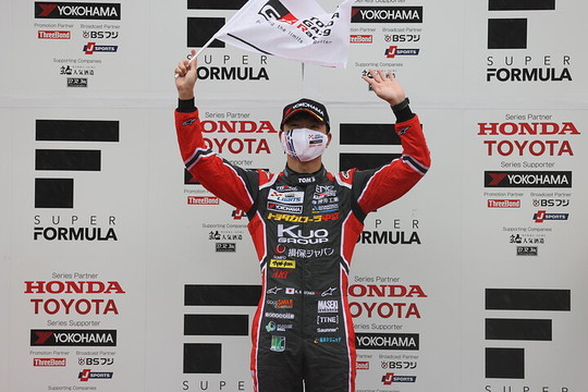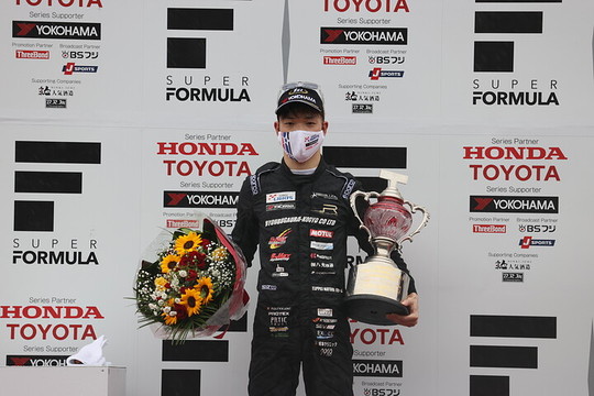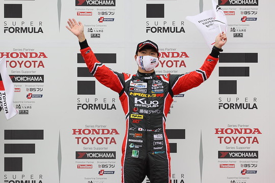 「安田選手が第1ヘアピンをオーバーラン気味に行ったので、自分はミスしないようにインについて普通に抜いていけた。(SC明けはかなりプッシュした?)最初はプッシュして、距離が開いたのを確認してからは普通のペースで走った。フォーミュラでの優勝は初めてだ」