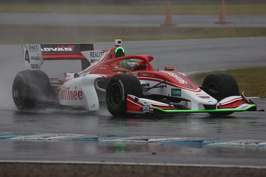 終了25分前には再びフェネストラズがペースアップ、1分30秒546でトップを奪い返した。2位には国本が続き、3位には松下信治(B-MAX RACING TEAM)が上がり、野尻は4位に落ちた。ここで5コーナーあたりで雨が落ち始め、ウェット宣言が出された。
