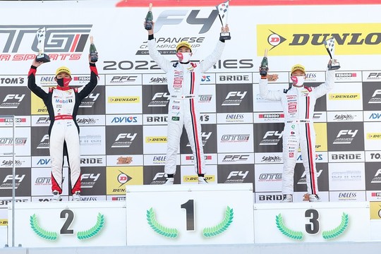 2022年スーパーFJ日本一決定戦決勝は富士スピードウェイにて12月11日(日)12周で開催され、3番グリッドからスタートの清水啓伸(Drago CORSE)が、岡本大地(FTK・レヴレーシングガレージ)、森山冬星(DIXCEL/ROYAL/MYST)との三つ巴のバトルを勝ち抜き優勝。見守る道上龍代表と共に優勝を分かち合った。