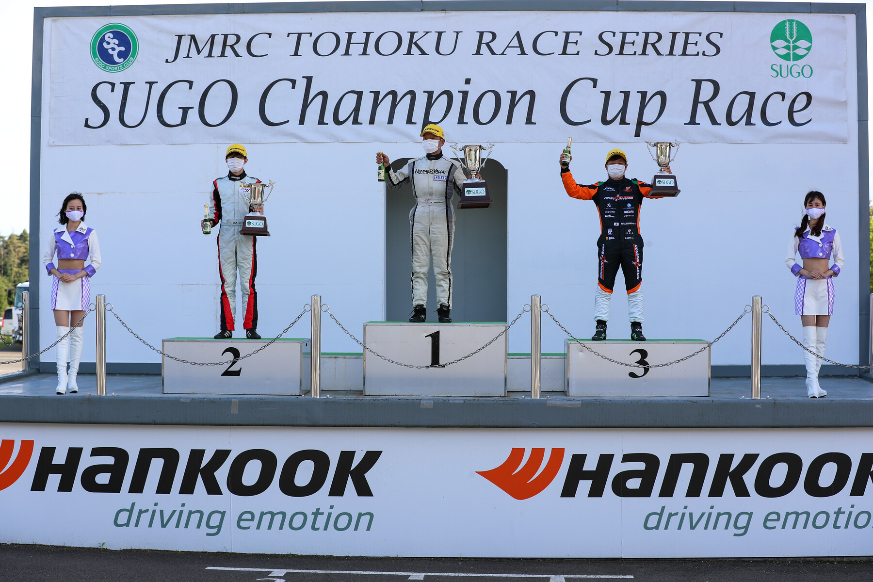 JAF-F4地方選手権シリーズ第2戦決勝は5月14日(土)にスポーツランドSUGOで開催され、ポールポジションからスタートしたハンマー伊澤(弁アルカディア☆ハンマーR疾風)がスタートで金井亮忠(チームNATS・正義・001)の先行を許すも2周目の第1コーナーでトップを奪い返し、その後はセーフティカー(SC)ランを挟んで一度も首位を譲らず、昨年9月のもてぎ戦以来の優勝を飾った。