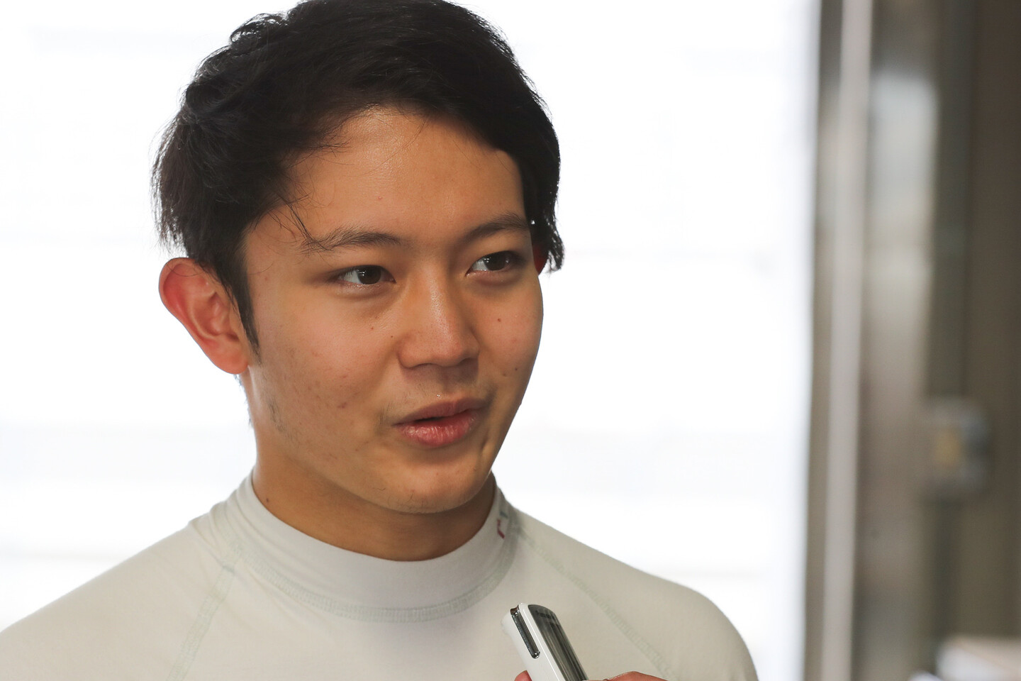 「頑張って前に追いつこうと思ったのですけれど、なかなかペースおんなじで、追いつけなくて、苦しいレースでした。自分の中で納得できるレース(内容)でなはい、という感じで、もうあとひと押し速さが欲しかったです。苦しかったです。オープニングラップもなかなかタイヤが暖まらなくて、昨日に比べたらタイヤのフィーリングがあまりよくなくて、それで全然ついて行けなかったです。暖まるまで時間かかりました。暖まってからはだんだんペースよくなったのですけど、向うも同じペースで、追いついたり離れたりを繰り返してました。(岡本選手と森山選手の接触は目の前だった?)100Rからけっこうバチバチにやっていたので、ちょっと危ないかなと思って離れて。100Rで清水選手のインにねじ込もうと思えばいけたのですけれど、清水選手も外側からイン側に戻ってきたので、そこはセーブしてよかったです。Bコーナーは森山選手もイン側ギリギリで、岡本選手は真ん中へんで結構詰めていたので、ちょっと危ないかな、と思っていました」