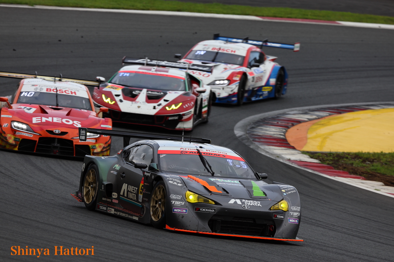 末廣選手は、燃料の重いスティント前半はペースを抑え、タイヤをマネジメントするクレバーな走りを見せていたが、スティント後半、燃料を消費したマシンが軽くなると、ペースを上げて1分39秒台をキープする走りを展開。2回目のルーティンピットをこなすチームも出る中、見かけ上の順位は再びトップとなった。