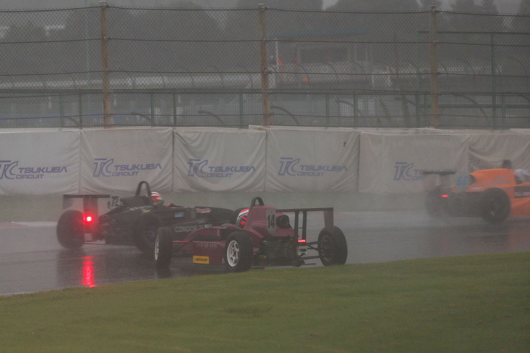 大草の脱落でトップに立ったのは小川。小山を従えて1コーナーをクリアすると、2周目には小山との差を1.8秒と開く。しかし、両者の差がこれ以上開くことはなかった。ニュータイヤで序盤に差を開きたい小川だったが、昨日のレース後のセッティング変更でオーバーステアとなったマシンと格闘していたのだ。