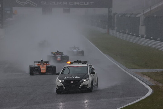 スタート時には雨は若干まったが、SC先導によるスタートとなった。SC中には雨が再び強くなり、3周目のSC先導中にレーススタートは困難と判断され、赤旗が提示された。全車、グリッドに戻り再開を待つ。