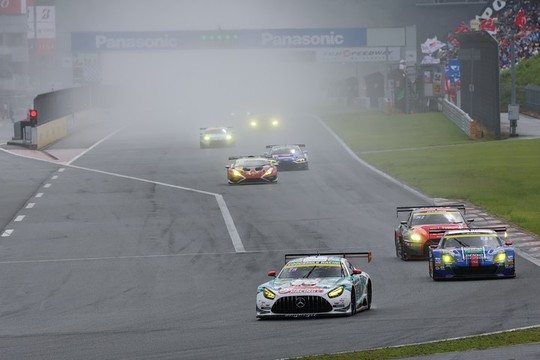 GT300クラスも天候とアクシデントに翻弄されて順位が激しく入れ替わる展開となった。