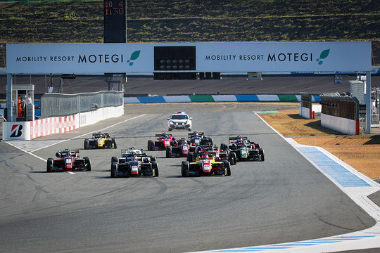 4番グリッドで優勝がチャンピオン獲得の必要条件でである平良響(モビリティ中京TOM'S 320 TGR-DC)は、1コーナーでインから3番グリッドのイゴール・オオムラ・フラガ(FANATEC-GRAN TURISMO with B-MAX)を攻略し3位に浮上した。4位にはフラガが、5位には古谷悠河(Deloitte. HTP TOM'S 320)が、6位にはエンツォ・トゥルーリ(モビリティ中京TOM'S 320)が、7位には野中誠太(PONOS Racing TOM'S 320 TGR-DC)、8位には小出峻(HFDP WITH TODA RACING)が続く。