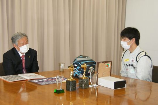 - 「根本市長がレースの事を知っていてくれてとても話しやすく、あっという間の30分でした。お忙しい中貴重なお時間を頂き感謝の気持ちでいっぱいです。お顔を知っていただけたので、今回の訪問が無駄にならないようにこれまで以上に気を引き締めてレースに取り組んでいこうと思います!」