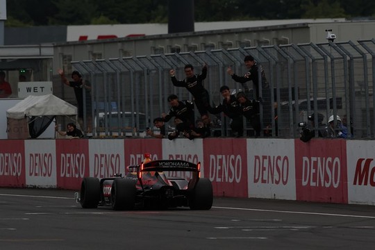 「昨日の予選は調子良かったんですけど、トラブルのためにQ2を走ることができず、16番手になってしまいました。昨日は僕自身も落ち込んで、先週のSFで小林可夢偉選手が『お腹いっぱい』って無線を飛ばしていたんですけど、本当に同じ気持ちで『もういいよ!』と。なんでこんな大事なところで、と思っていたんですけど、今日はチームが頑張ってリカバリーしてくれました。作戦的にもFCYのいいタイミングで入れましたし、そのピット中の作業で87号車をパスすることができました。今日は完璧な仕事をチームがしてくれたので、ほんと嬉しいですし、感謝しています」