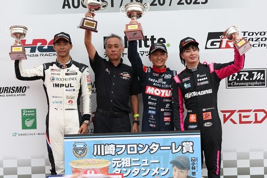 結局、16号車ARTA MUGEN NSX-GT(福住仁嶺/大津弘樹)は23号車の猛追を受けながらも10秒045の大差のまま77周を逃げ切り、ARTAとNSXにとっての今季初、福住にとっては自身通算5勝目をものにした。大津にとってはこれがGT500初優勝だ。