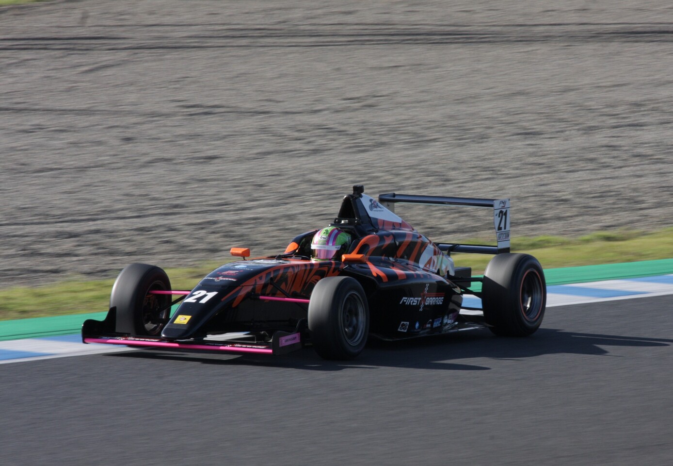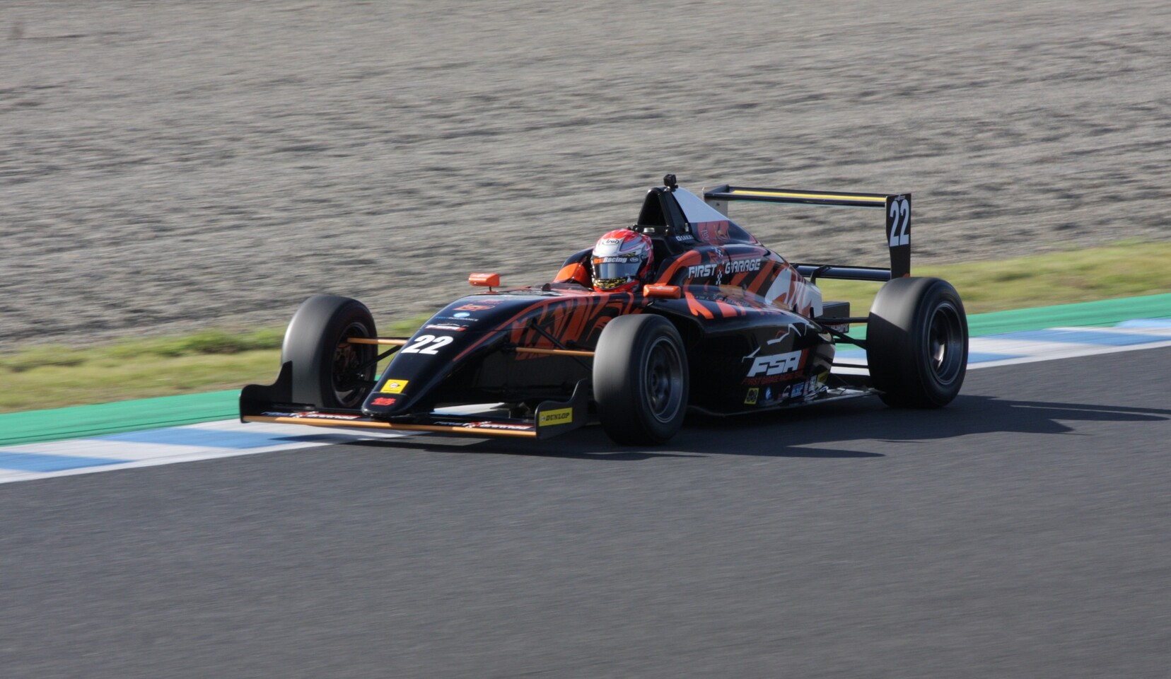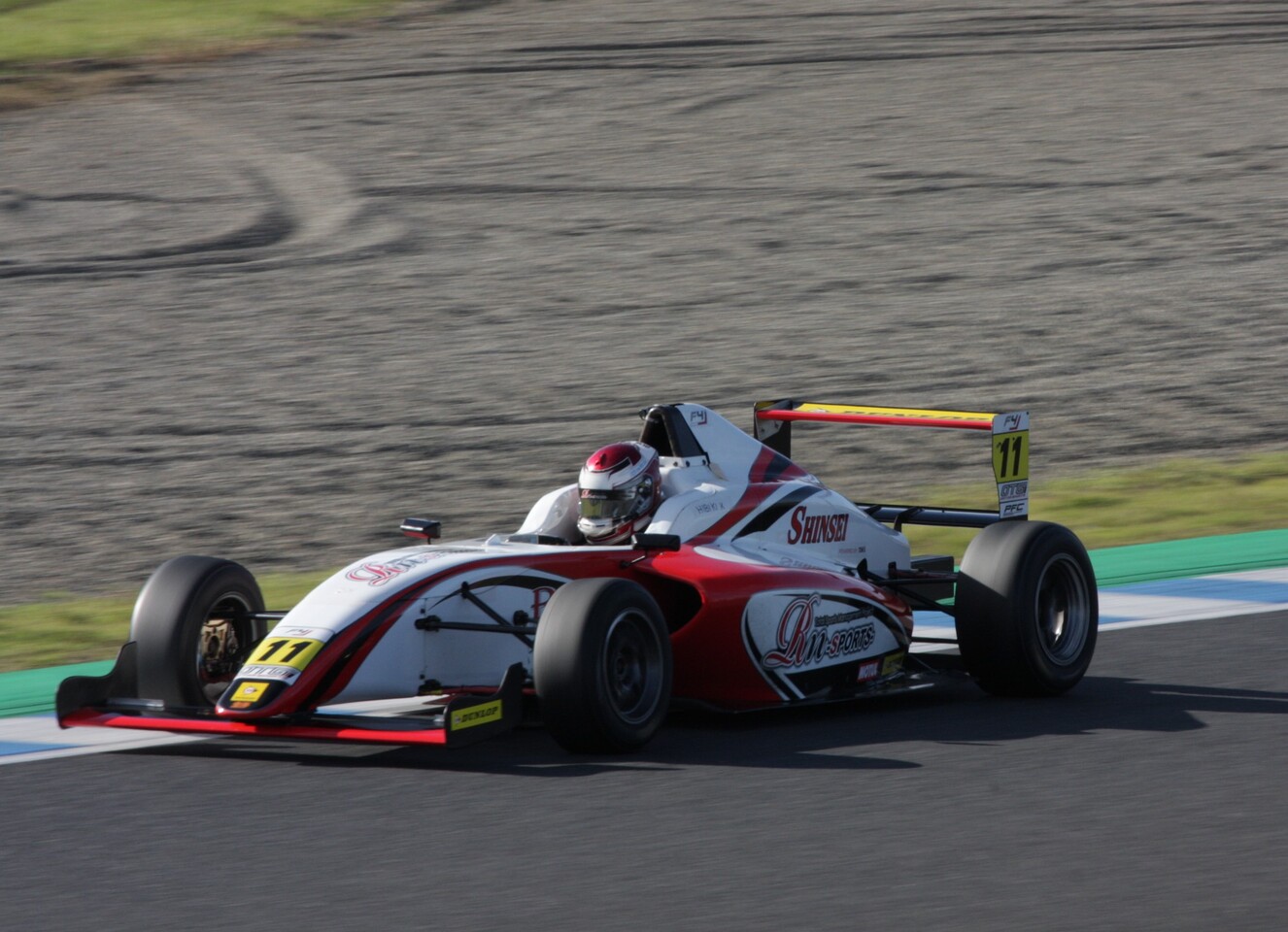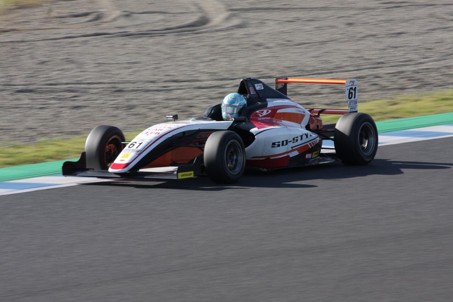残り3分、首位の小松は2分を切って1分59秒945、昨年11月のFIA-F4でのポールタイムに1秒まで迫った。酒井は2分0秒187まで自己ベストを刻むが、この直後に鈴木が0秒178を出して2番手へ浮上する、小松とは0.233秒差。前日のレース1では見せ場がなかった鈴木だが本領発揮か。酒井3番手。落合は0秒473と2分0秒台に入れてきたが4番手、岸も1秒850まで自己ベストを更新するも5番手、小野6番手とそれぞれポジションを落とす。