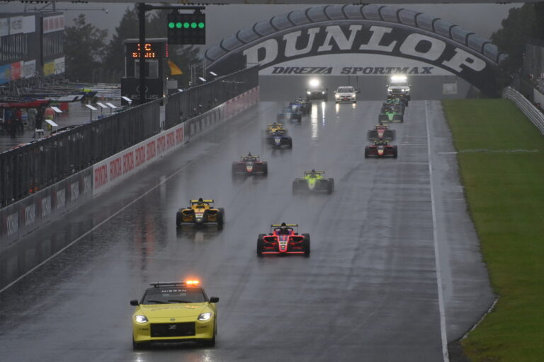 初めて試みとなるインディペンデントクラス単独のレースでしたが、前日から雨は降り続き、安全確保のためにセーフティカー(SC)先導でのスタートとなりました。しかし、SCランの4周目に、コンディション悪化で続行は危険と判断され、赤旗の提示によりレースは中断となりました。