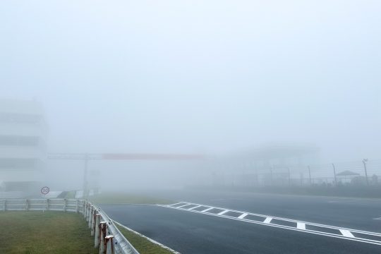 1か月前のSUGO戦は雨に翻弄され、消化不良のまま終わってしまった。その前の鈴鹿戦も台風の影響で延期になっているだけに、今回は秋晴れの週末を願ったが、土曜日のオートポリスは、早朝から霧に包まれ、視界が確保できない状況になってしまった。