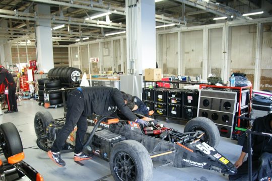「スーパーFJ日本一決定戦」のタイムテーブルは11月29日(金)からスタート。今年の「ファーストガレージ」の体制は5台という大所帯である。